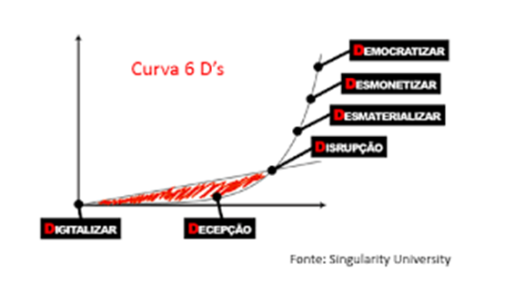São construídas com base nas tecnologias da informação, que desmaterializam o que antes era da natureza física e o transfere para o mundo digital sob demanda. E é representado pelo gráfico abaixo da Singularity University, conhecido como os 6 Ds da Inovação.